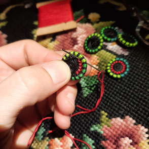 Lass auch du dich einwickeln vom besonderen Charme eines wiederentdeckten historischen Handwerks und tauche ein in die bunte Welt der Posamentenknöpfe!