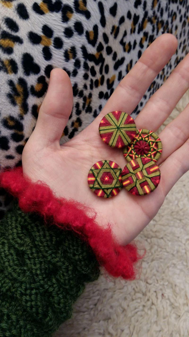 Die Knöpfe nach traditioneller Machart haben Kerne aus Holzscheiben, Holzkuppeln oder Aluminumringen. Sie werden mit Nadel, Faden und Geduld bewickelt, bewebt und bestickt. Unsere Posamentenknöpfe bestehen aus hochwertigen Materialien, die Rohlinge werden in Deutschland gefertigt, das baumwollene Garn in Europa. Die fertigen Knöpfe halten eine gelegentliche Wäsche bei geringer Temperatur aus.